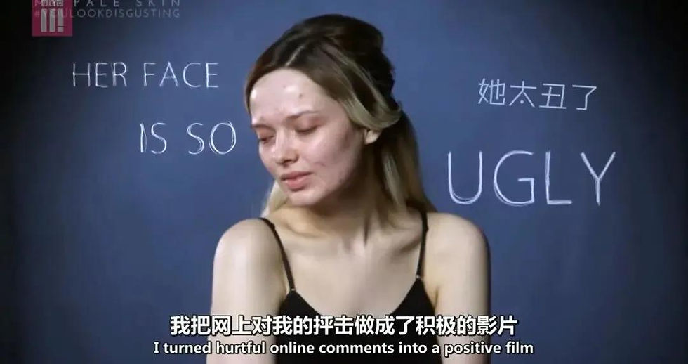 片中的叙述人艾姆·福特,是一个美妆博主。因为颜值问题,她曾遭受了长达6个月的网暴。每次一发视频,就有喷子莫名其妙对她进行人身攻击。