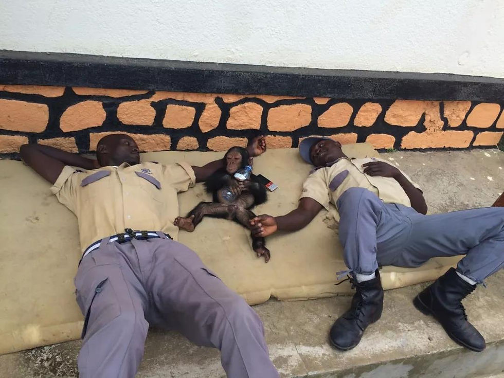 我先带它去当地防疫站打了疫苗,又托从金沙萨来的当地同事买了奶粉、奶瓶、尿不湿、小饼干等婴儿用品。就因为给猩猩花了这么些钱,我还被当地人当成笑话,调侃了很久。后来遇到了当地兽医,确定了一下平仔的年纪,果然只有三个月大。