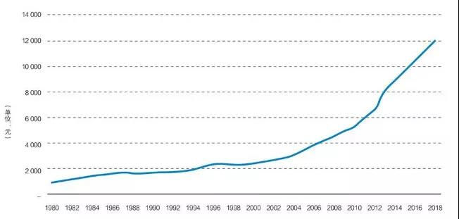 自此,我们见证了中国近40年的经济超高速增长。这40年的复合增长率平均约为9.4%。按实际价值计算,中国40年来国内生产总值翻了37倍。这个世界第一人口大国实现了超长时期内经济持续超高速的增长,这绝对是一个奇迹,是史无前例的。