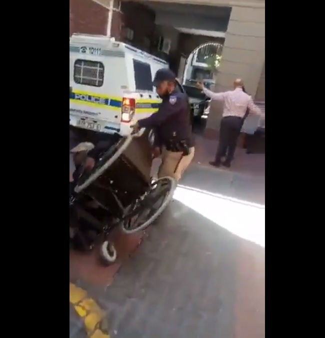 该市的两名官员被停职,等待全面调查的结果。 在广为分享的镜头中,看到一名警官将腿放在轮椅上。另一名警官抓住轮椅,将男子摔倒在地上。