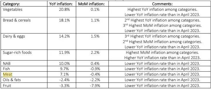 BFAP 最新的食品通胀简报显示,尽管国际价格略有上涨,但南非各种肉类的通胀正在放缓。 然而,通货膨胀的缓解通常并不是由于生产价格下降,而是因为需求下降,因为南非家庭面临压力,无法再购买典型的肉类产品。